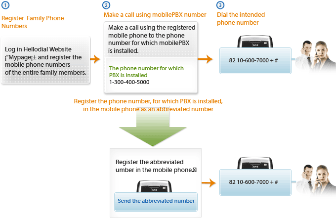 Same with the method to use existing phones (The method is same in city, toll, and international lines.)