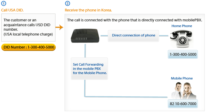 Case that mobilePBX is installed in Korea and USA DID is additional available